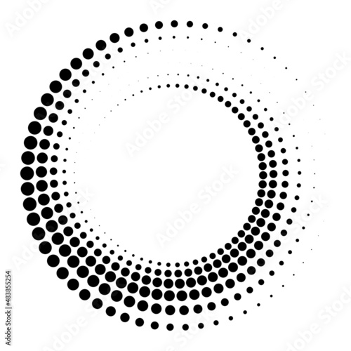 Halftone circle frame dots border. Round border Icon using halftone circle dots raster texture. Vector illustration.