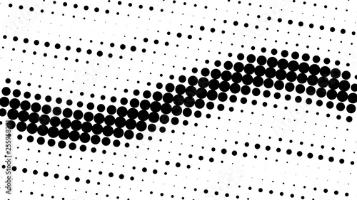 Halftone gradient pattern. Abstract halftone dots background. Monochrome dots pattern. Grunge texture. Pop Art, Comic small dots. Wave twisted dots. Banner with space. Template for cover, card, flyer