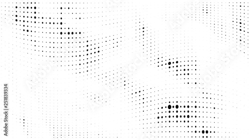 Halftone gradient pattern. Abstract halftone dots background. Monochrome dots pattern. Grunge texture. Pop Art, Comic small dots. Wave twisted dots. Design for presentation, report, flyer, cover, card