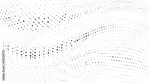 Halftone gradient pattern. Abstract halftone dots background. Monochrome dots pattern. Grunge wave texture. Pop Art Comic small dots. Radial twisted dots. Design for presentation, report, flyer, cover