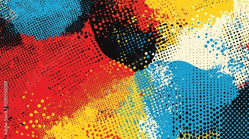 Halftone illustration in a vintage comic style, featuring a vibrant color scheme, perfect for graphic design and print projects that highlight texture and artistic modernity.