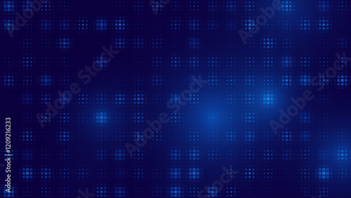 Halftone Pixel Dithering Square Tiles Seamless Pattern. Abstract Tech Pixel Background. Vector Illustration. Pixel Halftone Effect Random Tiles Generative Art.