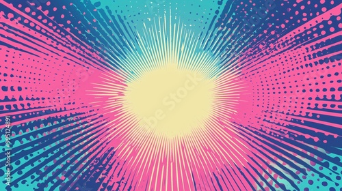 Halftone radial texture. Comic style grain background. Pop art faded textured frame. Grunge speckle effect. Dotted particles print wallpaper. Pixelated gradient backdrop