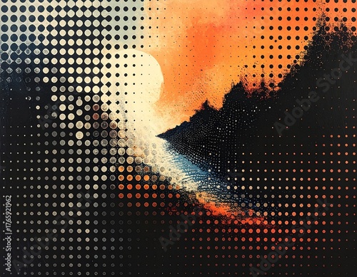 “Halftone texture with large dots fading from dark to light, creating depth