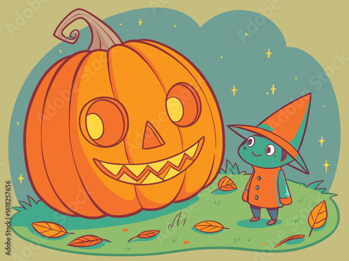 Halloween A cartoon pumpkin with a smile on its face, evil halloween, cute halloween, celebrating, pumpkin, October, autumn, fall.