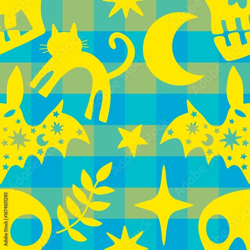 Halloween animals seamless cats pattern for wrapping paper and fabrics and linens and kids clothes print