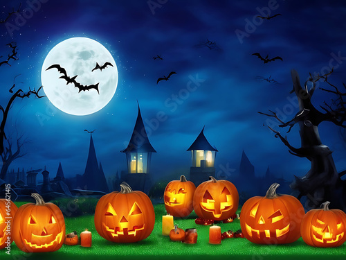 Halloween background with scary pumpkins candles AI Generated