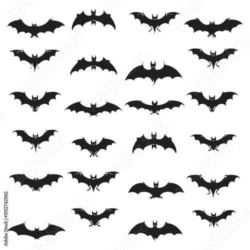 Halloween bat icon set. Bat silhouettes flying , black silhouettes isolated on white background
