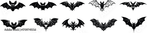 Halloween Bat Silhouettes Vector Collection – Spooky Flying Bat Icons for Decoration and Design