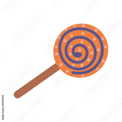 Halloween candy in flat design. Orange stripe swirl lollipop for holiday. Vector illustration isolated.