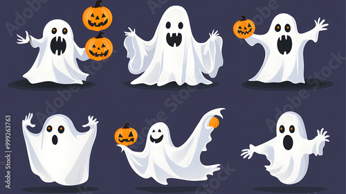 Halloween characters horror vector set design. Halloween character like grim reaper, ghost, pumpkin and Frankenstein.