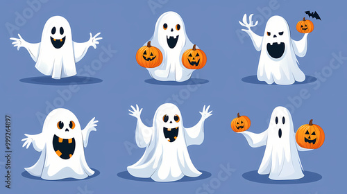 Halloween characters horror vector set design. Halloween character like grim reaper, ghost, pumpkin and Frankenstein.