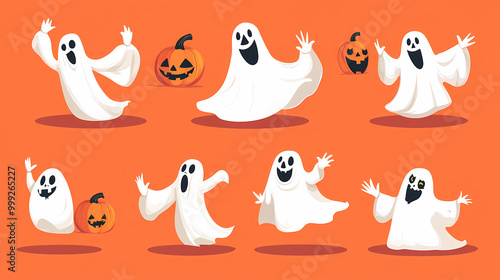 Halloween characters horror vector set design. Halloween character like grim reaper, ghost, pumpkin and Frankenstein.