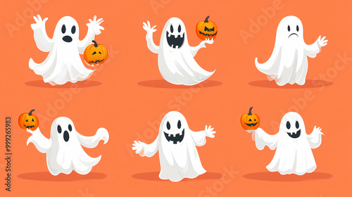 Halloween characters horror vector set design. Halloween character like grim reaper, ghost, pumpkin and Frankenstein.