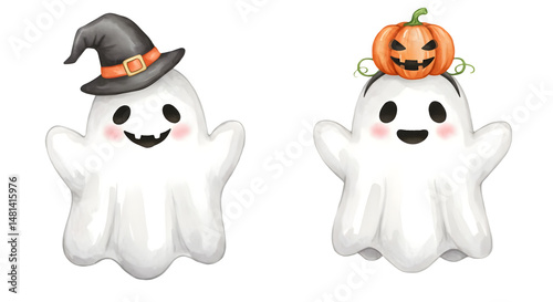 Halloween cute ghost, watercolor clipart illustration with isolated white background. Transparent background.