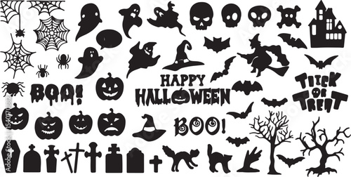Halloween Elements Vector Pack Haunted Houses Ghosts Pumpkins And Bats Icons