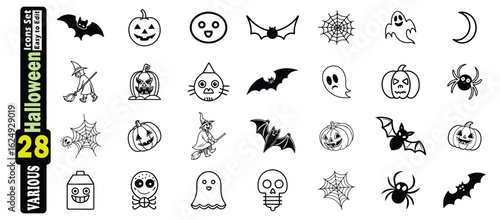 Halloween icons set with bats pumpkins ghosts spiders witches and moon vector
