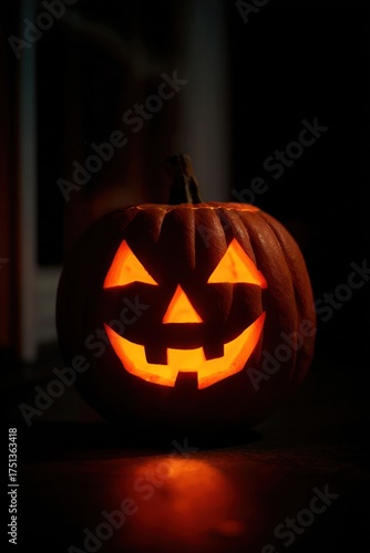 Halloween jack-oa??-lantern pumpkin glowing in the dark