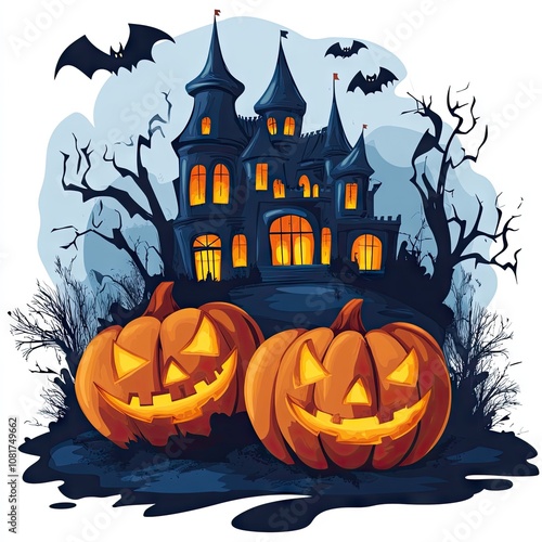 Halloween merayakan latar belakang dengan Pumpkin and horror Castle. Latar Belakang Horror Halloween.