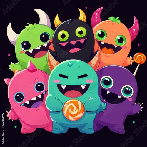 Halloween Monster Friends cute illustration