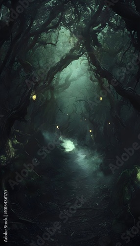 halloween night forest spooky night in forest spooky haunted trees in forest
