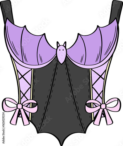 Halloween Pastel Gothic Lace Up Corset Top Bat Design Hand Drawn doodle Illustration