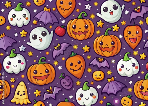 Halloween Patterns with Cute Cartoon Jack-o'-Lanterns, Bats, and Ghosts for Spooky Decor