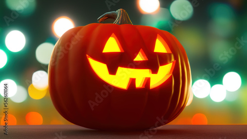 halloween pumpkin, blurred abstract lights in the background, Generative AI