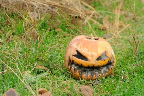 halloween pumpkin on grass