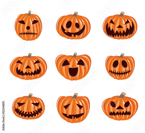 Halloween pumpkin vector icons set, Emotion Variation