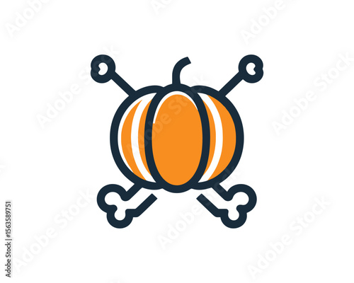 Halloween pumpkin with crossed bones icon