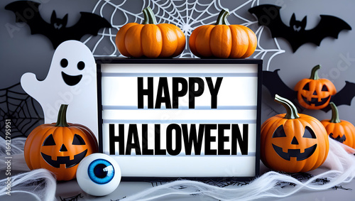 Halloween pumpkins ghost bats and lightbox jackolantern