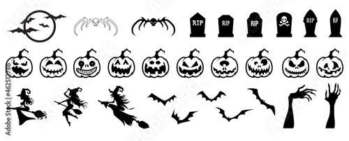 halloween, pumpkins, witches, graves, hands and bats