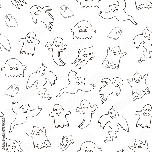 Halloween seamless vector hand drawn ghost funny doodle pattern