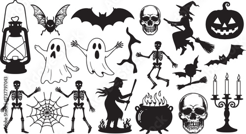 Halloween set Clipart, Black and white halloween themed, Halloween Spider 3d PNG, Midnight Forest Walk Under Full Moonlight,