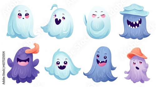 Halloween set of cute cartoon ghosts, illustration isolated on white background