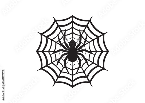 Halloween Spider in Web Silhouette Icon Vector Illustration.
