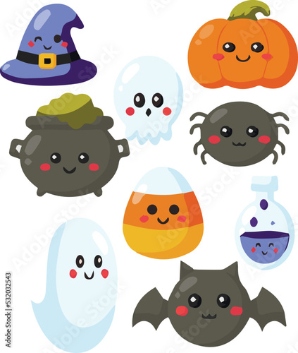 Halloween sticker set with pumpkin, bowler hat, spider, bat