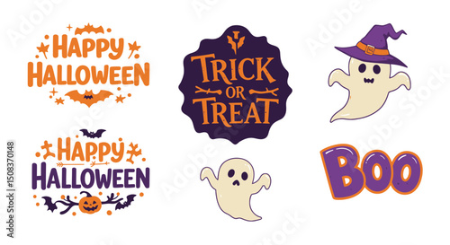 Halloween themed graphics with ghosts bats pumpkins and holiday greetings