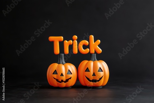 Halloween themed pumpkins with a playful 'Trick' sign on a dark background, perfect for festive celebrations.
