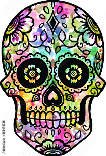 Halloween Watercolor Floral Skull on white background. Happy Halloween best for poster, card, invitation card.