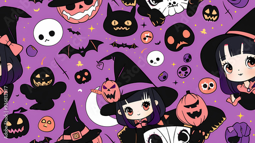 Halloween Witch Design Seamless Tile Pattern in Anime Manga Art