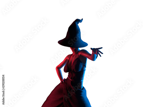 Halloween Witch in neon lights. Wide Halloween party art design 3d rendering