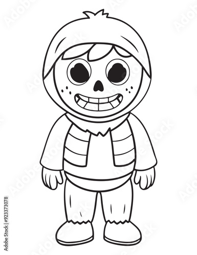 Halloween Zombie Costume, Halloween Coloring Page, Zombie line art