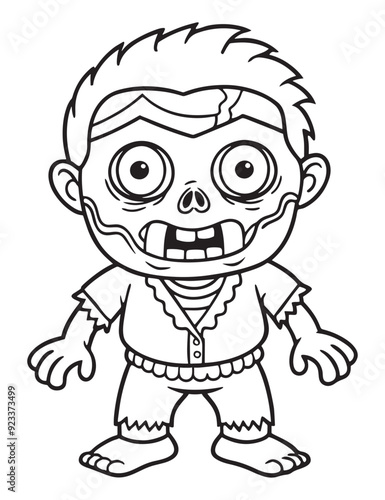 Halloween Zombie Costume, Halloween Coloring Page, Zombie line art