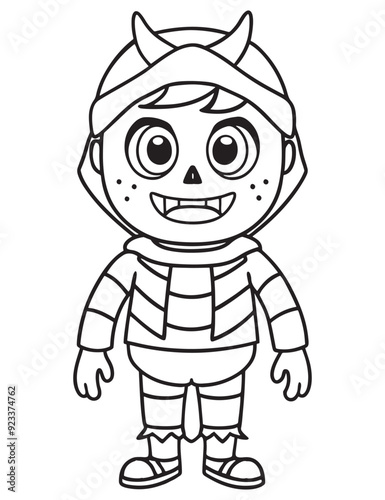 Halloween Zombie Costume, Halloween Coloring Page, Zombie line art