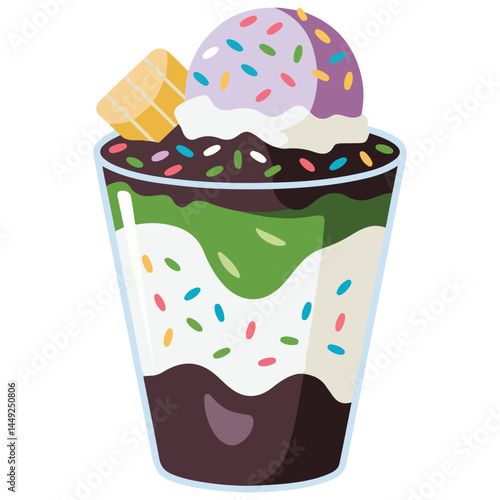 Halo Halo Filipino dessert with ube isolated vector illustration on white background