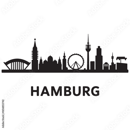Hamburg skyline horizontal banner. Hamburg, Germany. Vector template for your design. Vector black silhouette. with white background