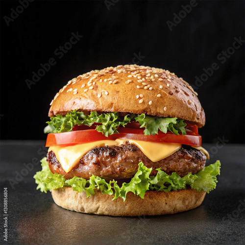 hamburger on a black background
