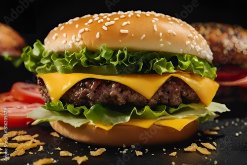 hamburger on black background